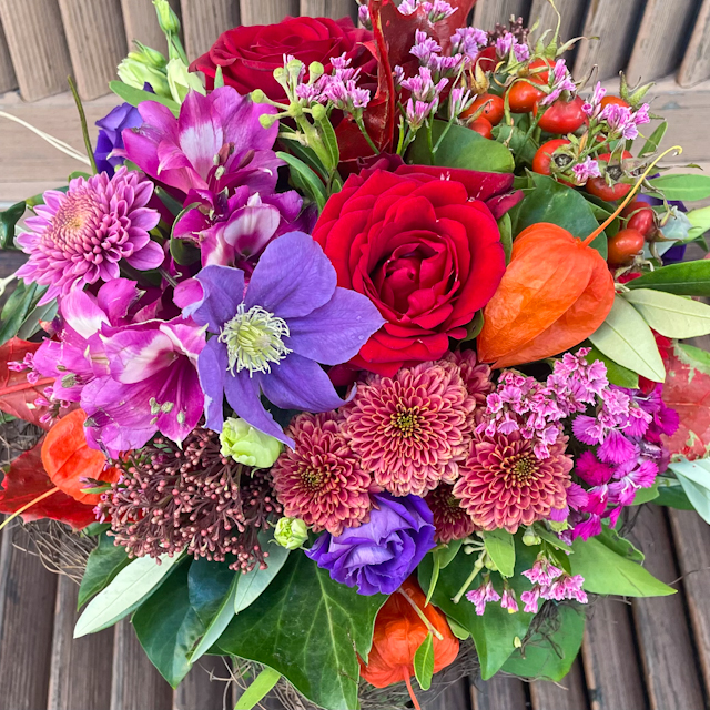Lassen Sie sich von den kreativen Ideen und einer grossen Auswahl an Türkränzen, Herbstfrüchten und Blumen begeistern.